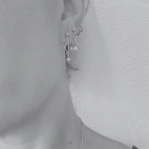 An open heart suspended in fluid form, finished with a luminous freshwater pearl that catches the light with every movement. Tiny, refined, and effortlessly feminine, Valentin is designed to be layered — whether styled with your everyday studs or added to a curated ear stack. Available in Gold Filles or Sterling Silver